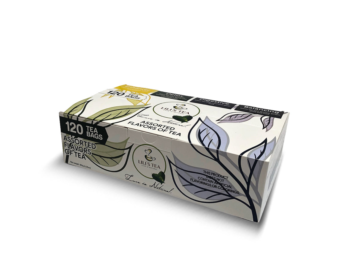 Choose from Lili's tea collection and experience the diverse range of flavors and benefits each blend offers. Whether you seek to soothe your digestion, or boost your well-being, the assorted box has something for you.